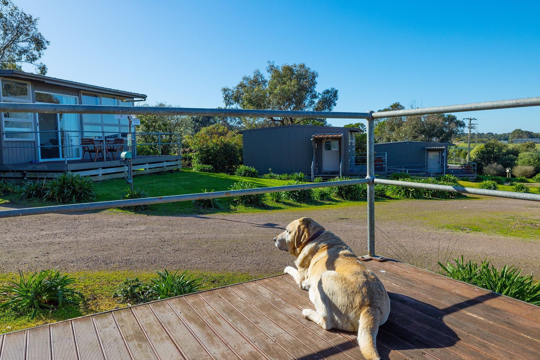 Our cabins are now all pet-friendly. Each spacious accommodation has reverse cycle air conditioning, a large flat screen Smart TV, and an iPod-compatible entertainment unit. Your accommodation contains a modestly equipped kitchen with utensils and crockery for most of your needs. Bedrooms are superbly appointed with king-size beds (some convertible to king-singles) with luxurious bedding and ample clothing storage. The bathroom contains a walk-in shower recess together with a vanity and toilet. Each unit has its own deck to enjoy views over the Southern Ocean, local farmlands, and the nearby town of Warrnambool. There is a large outdoor entertainment area with an open fire and BBQ facilities. A large multi-purpose room has billiards and table tennis, or conference/special gathering facilities. Guest laundry facilities are at the rear and provided free of charge. Extra rollaway beds are available (conditions and fees apply).”